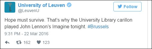Oι υπεύθυνοι του καθολικού πανεπιστημίου Leuven, που βρίσκεται στο Βέλγιο, αποφάσισαν με έναν ιδιαίτερα συγκινητικό τρόπο να αποδώσουν φόρο τιμής στα θύματα που χάθηκαν στις τρομοκρατικές επιθέσεις της Τρίτης, στις Βρυξέλλες.