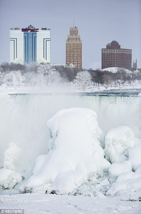 Οι ιδιαίτερα χαμηλές θερμοκρασίες που επικρατούν στην ανατολική ακτή των Ηνωμένων πολιτειών, μετέτρεψαν τους καταρράκτες του Νιαγάρα σε… παγόβουνα.