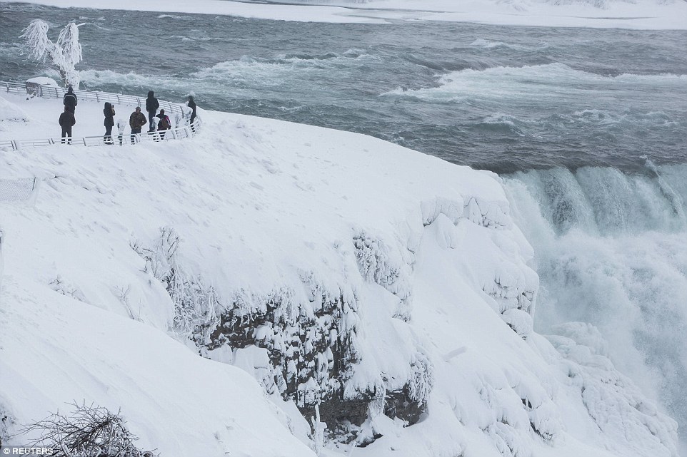 Οι επισκέπτες που συρρέουν προκειμένου να θαυμάσουν το μεγαλειώδες φυσικό τοπίο, είχαν την ευκαιρία να απολαύσουν ένα θέαμα σπάνιας ομορφιάς, καθώς τα νερά των καταρρακτών είχαν –κυριολεκτικά- παγώσει.