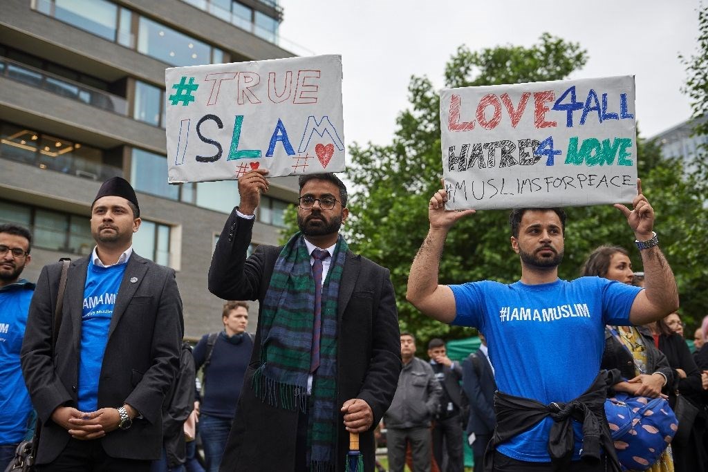 Την ίδια ώρα, οι πολίτες κρατούσαν πλακάτ με συνθήματα όπως «το μίσος δεν θα μας διχάσει» και «αντισταθείτε στον ρατσισμό».
