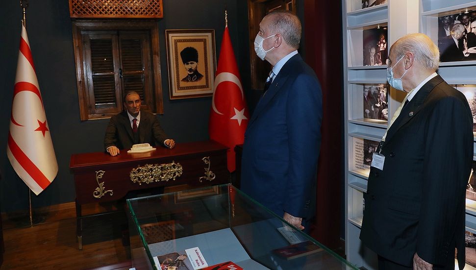 Συγκεκριμένα, το απόγευμα της Δευτέρας ο Τούρκος πρόεδρος μίλησε σε εκδήλωση νέων, όπου δεν έλειψαν οι “εθνικιστικές κορώνες” και τα τραγούδια. Και ακολούθως κατόπιν συνεννόησης με τον κυβερνητικό του εταίρο, τον νυν ηγέτη των “γκρίζων λύκων” Ντεβλέτ Μπαχτσελί, αποφασίστηκε η επίσκεψη στο σπίτι του Τουρκές που έχει μετατραπεί σε μουσείο.