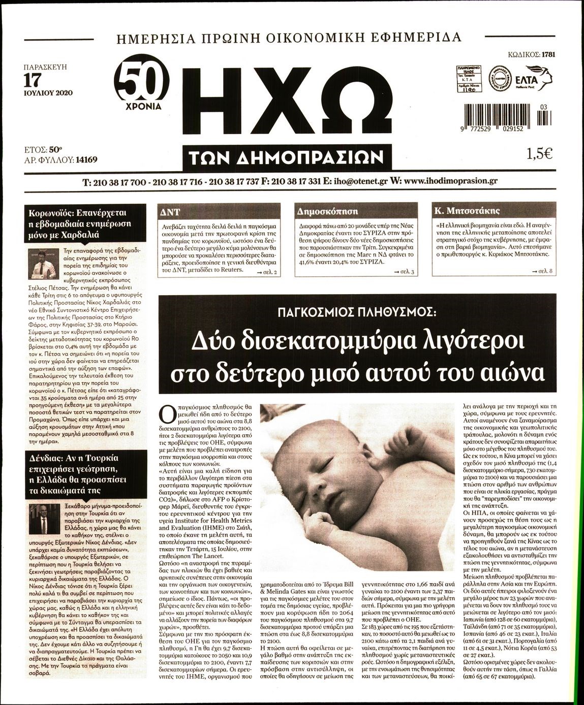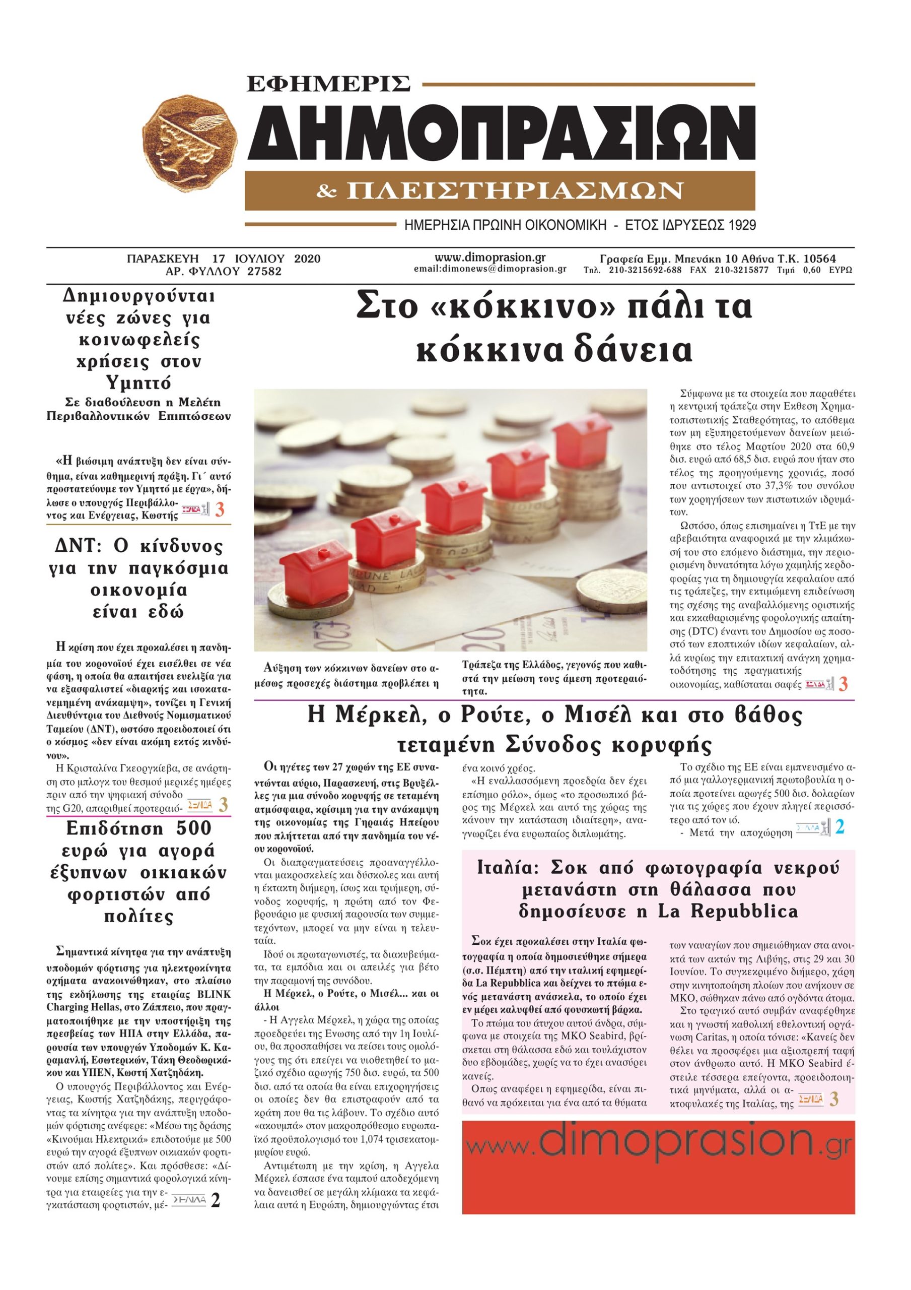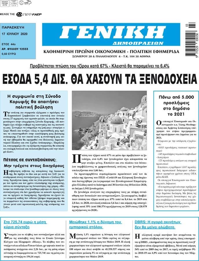 Οι οικονομικές εφημερίδες 17/7/2020 Διονύσης Νίκκας 06:28, Παρασκευή 17 Ιουλίου 2020 διεθνή Διαβάστε τα πρωτοσέλιδα των οικονομικών εφημερίδων… ΟΙΚΟΝΟΜΙΚΕΣ ΕΦΗΜΕΡΙΔΕΣ Μοιράσου το: σχολίασε κι εσύ (0 σχόλια) Ακολουθήστε το enikos.gr στο Google News και μάθετε πρώτοι όλες τις ειδήσεις Δείτε όλες τις τελευταίες ειδήσεις από την Ελλάδα και τον Κόσμο στο enikos.gr Ειδήσεις Ροή Ειδήσεων 1 ώρα πριν Χριστούγεννα στα μπλόκα: Επιμένουν στις κινητοποιήσεις τους οι αγρότες – Ανοίγουν τα διόδια το Σαββατοκύριακο 2 ώρες πριν Ουκρανία: Η άνευ προηγουμένου επίθεση σε ρωσικό τάνκερ στη Μεσόγειο και το μήνυμα προς στον Πούτιν – Το «μακρύ χέρι» του Κιέβου 48 λεπτά πριν Πούτιν: Τα μηνύματα σε Ευρώπη και ΝΑΤΟ από το μαραθώνιο «σόου» του – Η απαίτηση για «σεβασμό» και η ειρήνη «με τους όρους» της Μόσχας 2 ώρες πριν Τραμπ: Δεν αποκλείει την πιθανότητα ενός πολέμου στη Βενεζουέλα – «Ο Μαδούρο ξέρει καλύτερα από τον καθένα τι ακριβώς θέλω» 2 ώρες πριν Συνεχίζει να προκαλεί ο Μίτσκοσκι: «Για μένα το όνομα Μακεδονία είναι ιερό» 49 λεπτά πριν Ανακαλύφθηκαν αρχαία χρυσά νομίσματα 2.200 ετών που απεικονίζουν τον θεό Απόλλωνα – Η άγνωστη σύνδεση με τον Φίλιππο Β΄ της Μακεδονίας 2 ώρες πριν Ύπνος: Μια κρυφή κατάσταση του εγκεφάλου πριν από τον ύπνο μπορεί να είναι το “κλειδί” για υψηλή ευφυΐα και δημιουργικότητα 3 ώρες πριν Αριθμολογία: Οι άνθρωποι που έχουν γεννηθεί αυτές τις 4 ημερομηνίες, συχνά παρεξηγούνται – «Η καλοσύνη τους κρύβει τεράστια δύναμη» 4 ώρες πριν Ξεχάστε το καθάρισμα το Σαββατοκύριακο: Ο «κανόνας των 20 λεπτών» που θα σας λύσει τα χέρια 3 λεπτά πριν Σάμος: Άνοιξε το μπλόκο των αγροτών στον κόμβο Κοκκαρίου – Σε νέα συνεδρίαση θα καθορίσουν την στάση τους 11 λεπτά πριν Άνω Λιόσια: Πυροβολισμοί σε επιχείρηση με χαλιά – Εντοπίστηκαν 10 κάλυκες 19 λεπτά πριν Γάζα: Ισραηλινό πλήγμα σε σχολείο που είχαν καταφύγει εκτοπισμένοι – Τουλάχιστον έξι νεκροί 33 λεπτά πριν Ολυμπιακός – Βιλερμπάν 107-84: Επιστροφή στις νίκες με… προπόνηση 39 λεπτά πριν Νέος Κόσμος: Συνελήφθη 41χρονος με ένταλμα από την Τουρκία για εμπόριο ναρκωτικών και ληστεία ENIKOS NETWORK Το ΕΚΑΒ τιμήθηκε από την Ακαδημία Αθηνών για τα 40 χρόνια προσφοράς του Έχετε πραγματικά μεγάλη καρδιά; 10 χαρακτηριστικά όσων έχουν καλοσύνη Αναστολή μέτρων αναγκαστικής εκτέλεσης για κτηνοτρόφους που πλήττονται από την ευλογιά των αιγοπροβάτων Πλήρης επάρκεια προϊόντων στις λαϊκές της Αττικής, παρά τις αγροτικές κινητοποιήσεις – Τι απαντούν οι πωλητές Χαρτογραφώντας το «σημείο χωρίς επιστροφή»: Για πρώτη φορά αποκαλύπτεται με λεπτομέρεια το ακανθώδες όριο της ατμόσφαιρας τ... Η Google καταργεί τη λειτουργία «dark web report» – Πώς θα μπορούν οι χρήστες να διαγράφουν τα δεδομένα τους περισσότερα 23:30 , Παρασκευή 19 Δεκεμβρίου 2025 Γάζα: Ισραηλινό πλήγμα σε σχολείο που είχαν καταφύγει εκτοπισμένοι – Τουλάχιστον έξι νεκροί Τουλάχιστον έξι άνθρωποι σκοτώθηκαν και αρκετοί ακόμη τραυματίστηκαν μετά από ισραηλινή επίθεσ... 23:01 , Παρασκευή 19 Δεκεμβρίου 2025 Πούτιν: Τα μηνύματα σε Ευρώπη και ΝΑΤΟ από το μαραθώνιο «σόου» του – Η απαίτηση για «σεβασμό» και η ειρήνη «με τους όρους» της Μόσχας Ο Ρώσος πρόεδρος Βλαντίμιρ Πούτιν χρησιμοποίησε τη φετινή μαραθώνια συνέντευξη Τύπου και την τ... 22:10 , Παρασκευή 19 Δεκεμβρίου 2025 Τραμπ: Δεν αποκλείει την πιθανότητα ενός πολέμου στη Βενεζουέλα – «Ο Μαδούρο ξέρει καλύτερα από τον καθένα τι ακριβώς θέλω» Ο πρόεδρος των ΗΠΑ, Ντόν