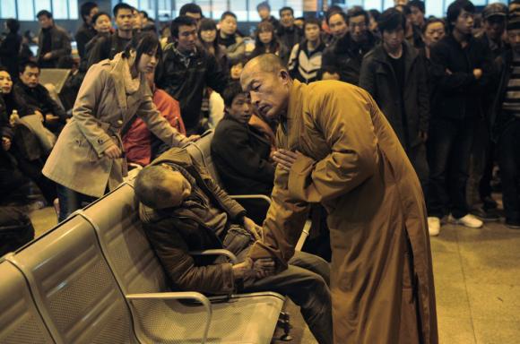4. Μοναχός προσεύχεται για τον ηλικιωμένο άντρα που πέθανε ξαφνικά καθώς περίμενε το τραίνο, στην πόλη Shanxi Taiyuan της Βόρειας Κίνας.