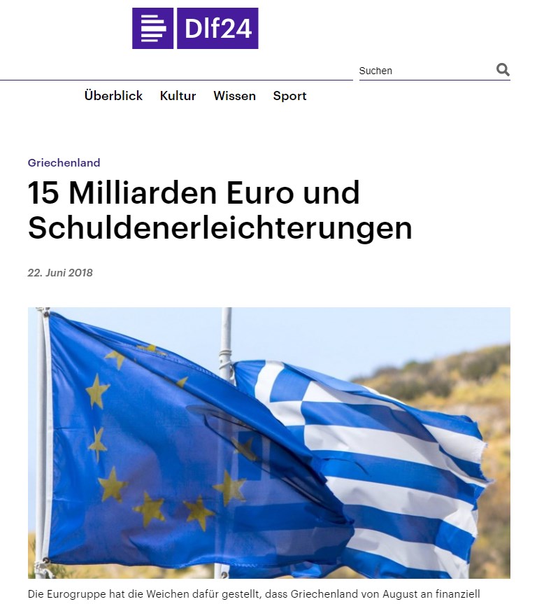 Deutschlandfunk (δημόσιο γερμανικό ραδιόφωνο): 15 δισ. ευρώ και ελάφρυνση του χρέους