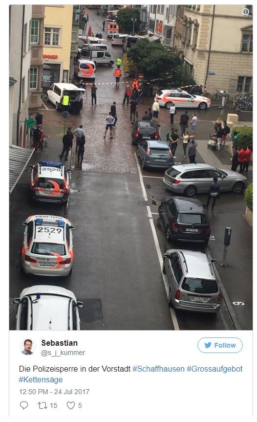 Tουλάχιστον πέντε άνθρωποι τραυματίστηκαν κατά την επίθεση άγνωστου άνδρα στην ελβετική πόλη Σαφχάουσεν, σύμφωνα με την αστυνομία. Δύο από αυτούς βρίσκονται σε σοβαρή κατάσταση.