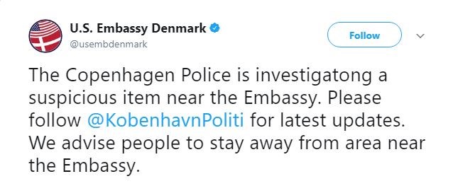 Οι αρχές της αμερικανικής πρεσβείας στη Δανία συστήνει στον κόσμο να αποφύγει την κυκλοφορία στην περιοχή.