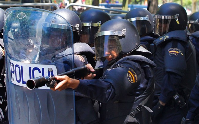 Συγκλονίζει αυτή η φωτογραφία που από χθες κάνει το γύρο του κόσμου, μέσω των social media, και, κατά δήλωση, έχει απαθανατίσει Ισπανό διαδηλωτή που χτυπήθηκε από τις πλαστικές σφαίρες που χρησιμοποίησε η αστυνομία κατά των πολιτών στη Μαδρίτη.
