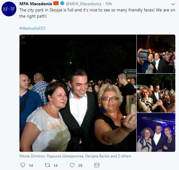 Ο πρωθυπουργός της ΠΓΔΜ δημοσίευσε στον λογαριασμό του στο Facebook αρκετές φωτογραφίες από τη φιέστα, όπου πόζαρε και για selfie, όπως έκανε και ο υπουργός Εξωτερικών, Νικολά Ντιμιτρόφ.