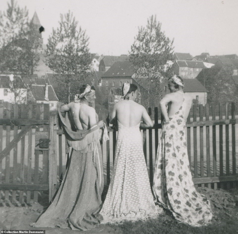Φορώντας βραδινές τουαλέτες που στην πραγματικότητα ήταν αυτοσχέδια φορέματα από κουρτίνες, οι στρατιώτες του Τρίτου Ράιχ πόζαραν στο φακό.Οι φωτογραφίες φέρεται να τραβήχτηκαν στη διάρκεια εκδηλώσεων ή πάρτι, με τους Γερμανούς στρατιώτες να βάζουν τα… δυνατά τους για να γελάσουν.