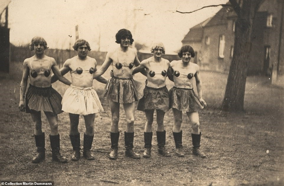 Φορώντας βραδινές τουαλέτες που στην πραγματικότητα ήταν αυτοσχέδια φορέματα από κουρτίνες, οι στρατιώτες του Τρίτου Ράιχ πόζαραν στο φακό.Οι φωτογραφίες φέρεται να τραβήχτηκαν στη διάρκεια εκδηλώσεων ή πάρτι, με τους Γερμανούς στρατιώτες να βάζουν τα… δυνατά τους για να γελάσουν.