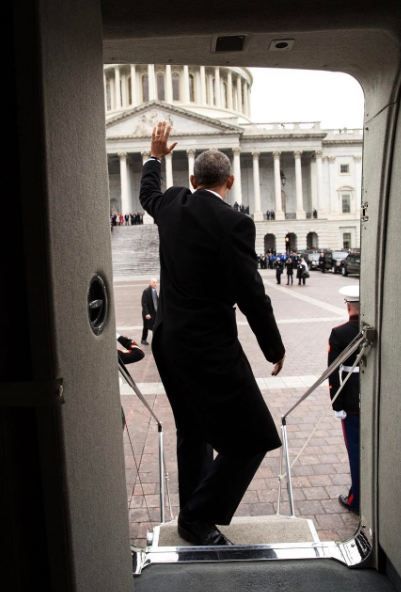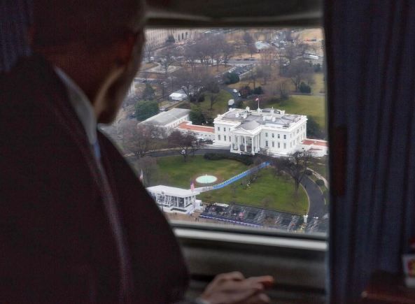 Στις φωτογραφίες, ο Ομπάμα αποχαιρετά τον κόσμο πριν μπει στο ελικόπτερο, ενώ σε μία άλλη, κοιτάζει από ψηλά τον Λευκό Οίκο, τον οποίο παρέδωσε χθες στον Ντοναλντ Τραμπ.