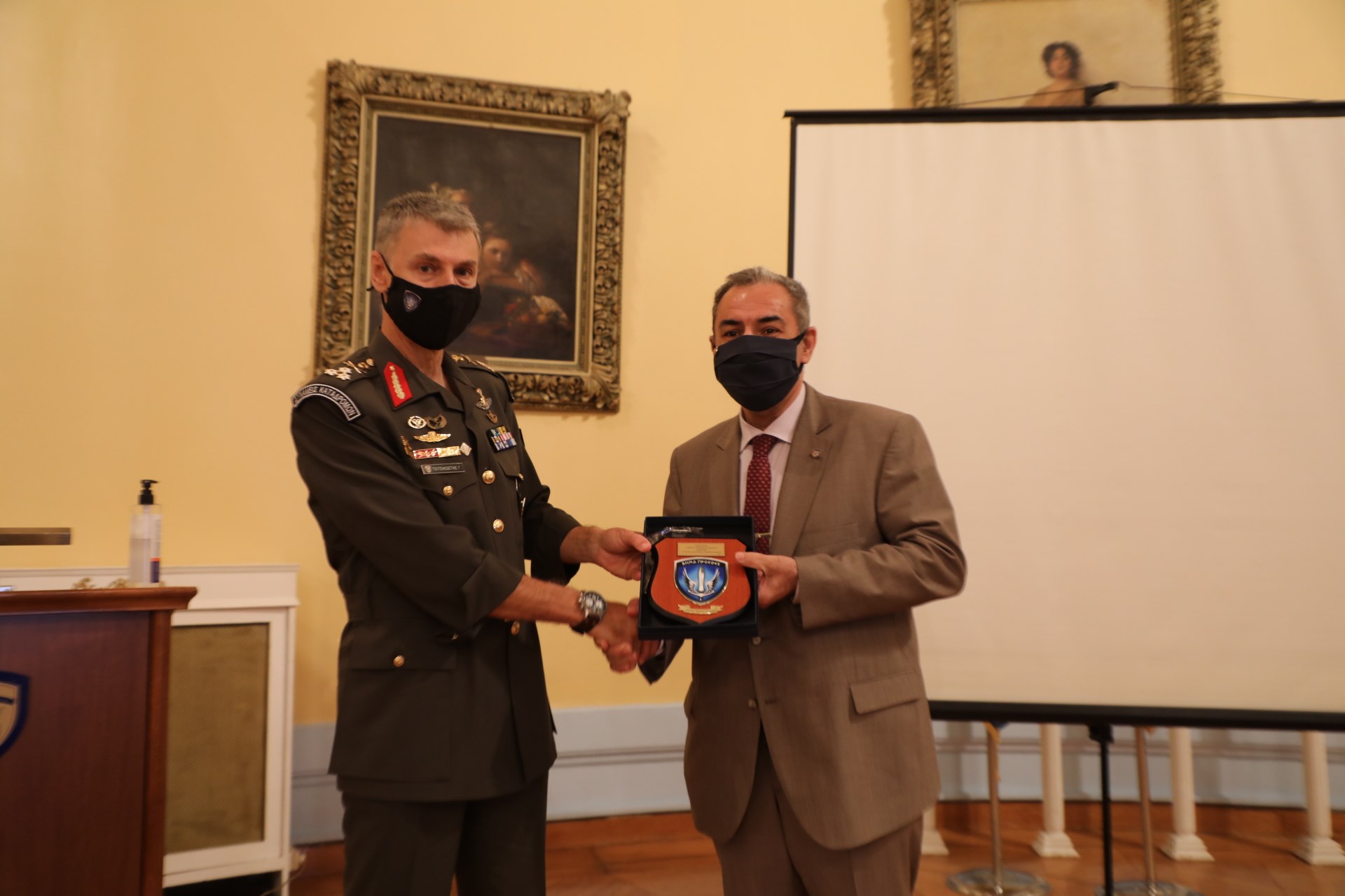 Έτσι, κάθε άλλο παρά τυχαία είναι και η απονομή αναμνηστικής πλακέτας στον Γενικό Δ/ντη Πολιτικών και Διεθνών Σχέσεων του υπουργείου από τον Διοικητή της ΔΕΠ, η οποία είχε και μία πρωτιά: Είναι η πρώτη πλακέτα που δίδεται από την επίσημη συγκρότηση της ΔΕΠ.