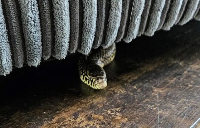Η οικογένεια Pantziz από το Lincolnshire της Αγγλίας χαλάρωνε στο σαλόνι την Κυριακή, όταν φαινομενικά από το πουθενά, ένα μεγάλο φίδι φάνηκε κάτω από τον καναπέ τους, σύμφωνα με το SWNS.