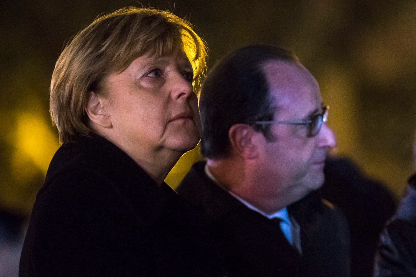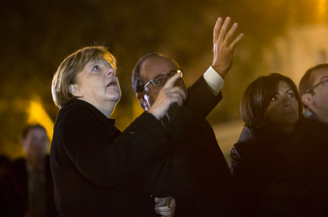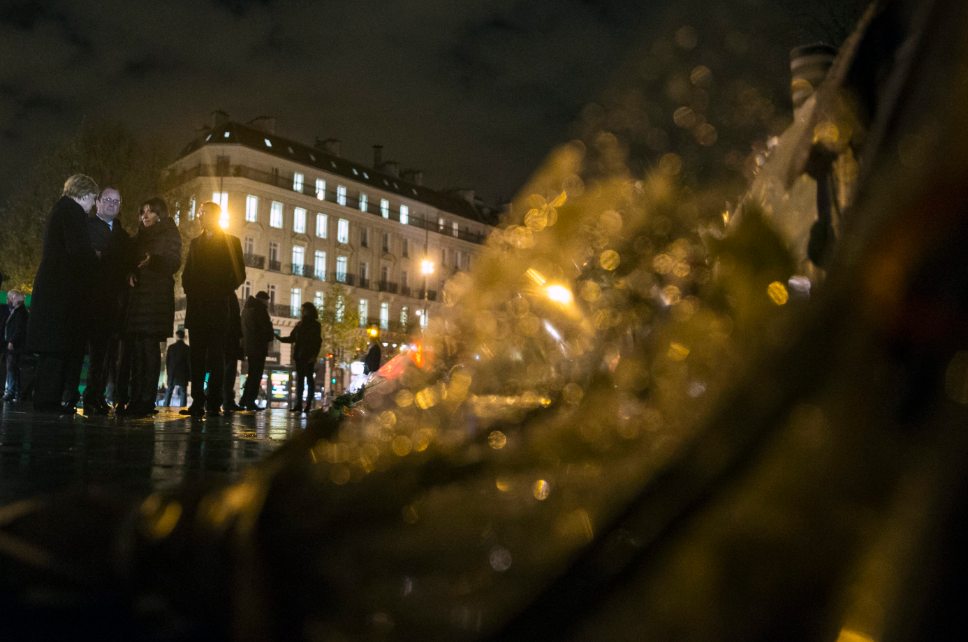 O πρόεδρος της Γαλλίας Φρανσουά Ολάντ και η καγκελάριος της Γερμανίας Άνγκελα Μέρκελ μετέβησαν μαζί λίγο μετά τις 20.00 ώρα Ελλάδας την Τετάρτη στην Πλας ντε λα Ρεπουμπλίκ στο Παρίσι προκειμένου να αποτίσουν φόρο τιμής στη μνήμη των 130 ανθρώπων που σκοτώθηκαν στις τρομοκρατικές επιθέσεις της 13ης Νοεμβρίου.