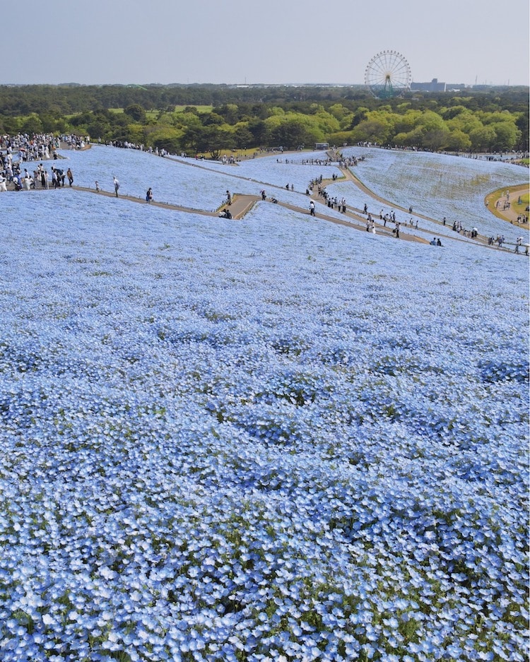 Στις πόλεις ανθίζουν τα λουλούδια την άνοιξη. Είναι ωστόσο δύσκολο να βρεις ολάνθιστο λιβάδι. Γι’ αυτόν τον λόγο οι Ιάπωνες ταξιδεύουν σε ένα ευρύχωρο εθνικό πάρκο, το οποίο απέχει ούτε δυο ώρες με το αυτοκίνητο, από το πολύβουο Τόκιο. Απλωμένο σε περίπου δύο τετραγωνικά χιλιόμετρα, το Hitachi Seaside Park περιέχει εκατομμύρια λουλούδια που κάθε άνοιξη ανθίζουν και σχηματίζουν σκηνικό παραμυθιού.