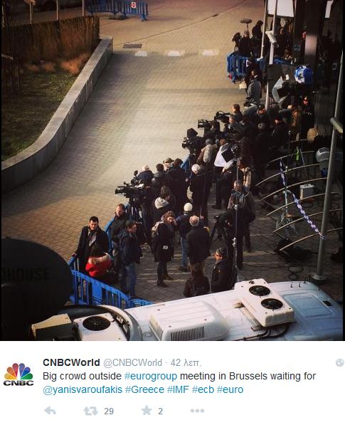 Τα φώτα της δημοσιότητας έχει συγκεντρώσει πάνω του ο νέος υπουργός Οικονομικών, Γιάνης Βαρουφάκης, από τότε που ανέλαβε τα καθήκοντά του. Ιδιαίτερο ενδιαφέρον δείχνουν και τα Διεθνή Μέσα Ενημέρωσης, ενώ όπως φαίνεται και στη φωτογραφία φωτορεπόρτερ από όλο τον κόσμο βρίσκονται στις Βρυξέλλες για να καλύψουν τις εργασίες του Eurogroup και να φωτογραφήσουν τον Γιάνη Βαρουφάκη.