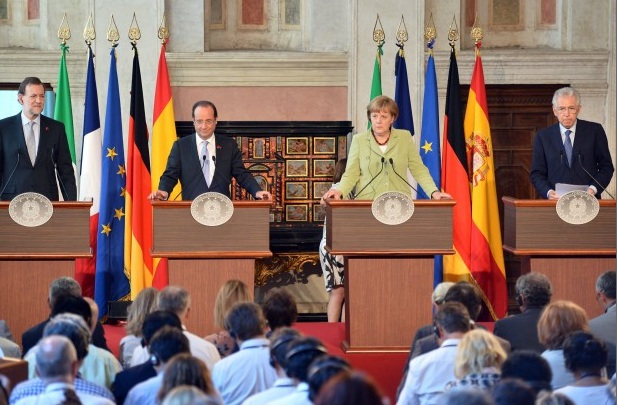 Ο Μάριο Μόντι «έκλεισε» την συνέντευξη Τύπου που παραχώρησαν οι τέσσερις ηγέτες, στη Ρώμη, με την εξής φράση:«Θέλω να ευχαριστήσω τους συναδέλφους που ήρθαν σήμερα εδώ και απέδειξαν για άλλη μία φορά ότι, όλοι οι δρόμοι οδηγούν στη Ρώμη.»