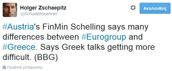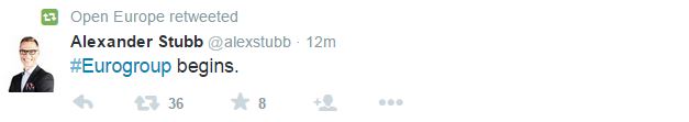 “Στην κλίμακα από το 1-10 νομίζω οτι βρισκόμαστε περίπου στο 3-4″ δήλωσε προσερχόμενος στη συνεδρίαση του Eurogroup”, o Φινλανδός υπουργός Οικονομικών Αλεξάντερ Στουμπ. Δήλωσε ωστόσο αισιόδοξος, επισημαίνοντας οτι “κανείς δεν κάνει εμπλοκή σε μια συμφωνία, όλοι προσπαθούμε εποικοδομητικά να βρούμε μια λύση σε μια πολύ δύσκολη κατάσταση”. Πρόσθεσε επίσης οτι “όσα παρουσίασαν οι Έλληνες δεν είναι αρκετά σ΄αυτό το επίπεδο, πρέπει να έχουμε σαφείς δεσμεύσεις οτι αυτά θα εφαρμοστούν.”