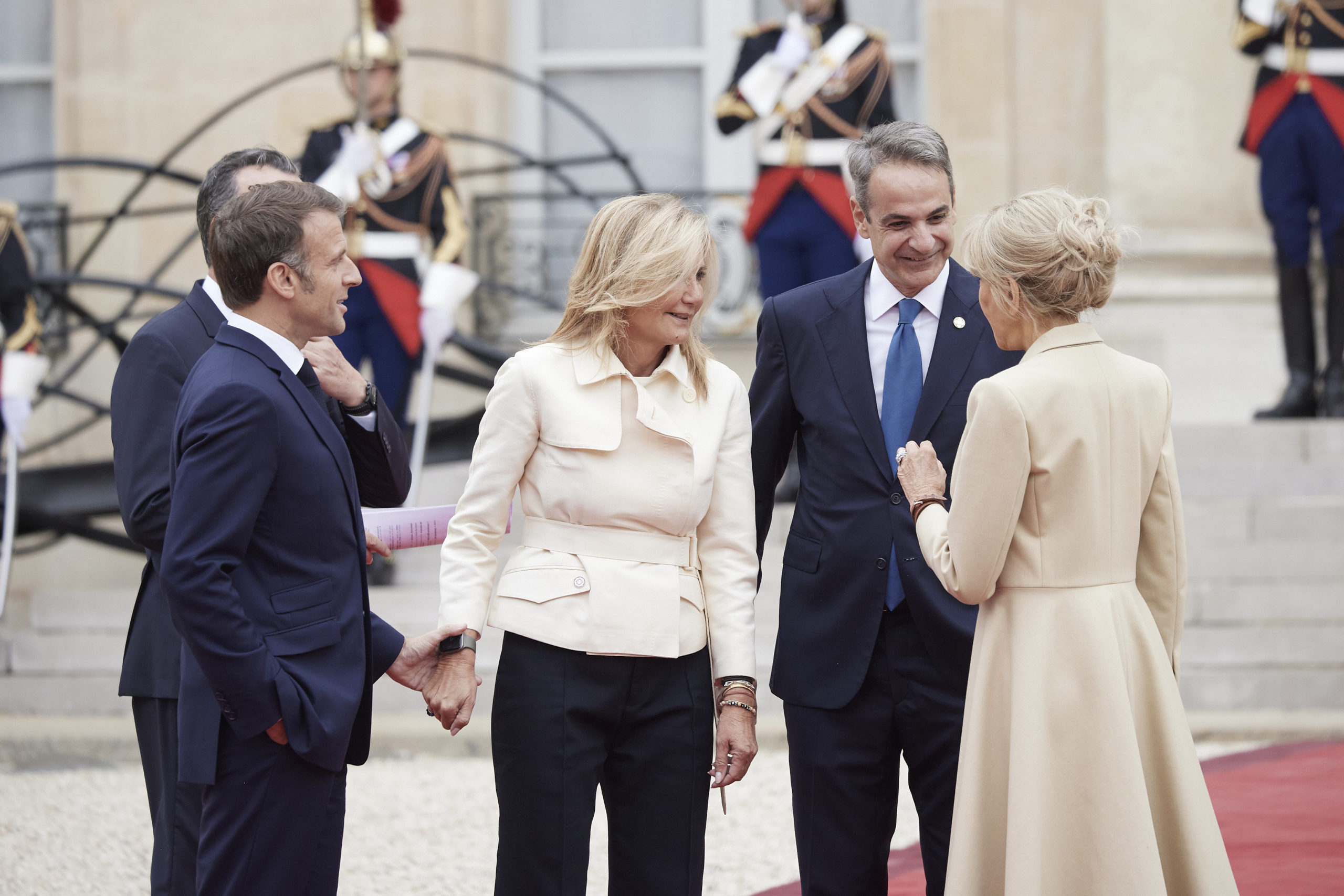 Μεταξύ των ηγετών που παρευρέθηκαν ήταν και ο πρωθυπουργός Κυριάκος Μητσοτάκης, συνοδευόμενος από τη σύζυγό του Μαρέβα Γκραμπόφσκι.