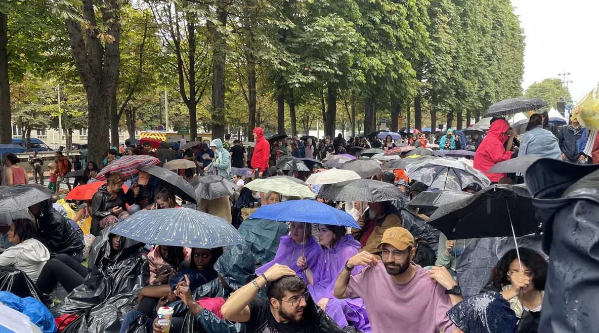 Με βαριά συννεφιά και ενίοτε υπό βροχή άρχισαν να προσέρχονται στις θέσεις τους για να παρακολουθήσουν την τελετή έναρξης των Ολυμπιακών Αγώνων 2024, οι τυχεροί που έχουν το πολυπόθητο εισιτήριο.