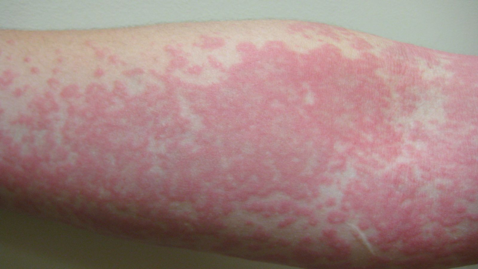 Το πρώτο είναι ένα εξάνθημα, που εμφανίζεται ξαφνικά στο δέρμα με τη μορφή εξογκωμάτων. Αυτά τείνουν να προκαλούν φαγούρα και συχνά εμφανίζονται παράλληλα με έντονο κνησμό στις παλάμες ή τα πέλματα.