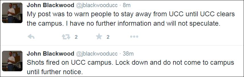 Κρυμμένος στο γραφείο του ο καθηγητής στο πανεπιστήμιο του Όρεγκον, John Blackwood, tweetαρε με σκοπό να προειδοποιήσει τον κόσμο να μην πλησιάσει στο πανεπιστήμιο.