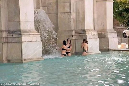 Όπως φαίνεται και στις φωτογραφίες τα δύο από τα νεαρά κορίτσια έμειναν με το μπικίνι τους, ενώ η τρίτη κοπέλα φορούσε ολόσωμο μαγιό. Τις φωτογραφίες, ανέβασε στο διαδίκτυο, ένας περαστικός που εκνευρισμένος, είδε τις τουρίστριες να δροσίζονται στο ιστορικό συντριβάνι.