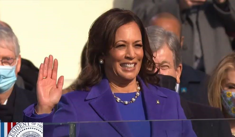 Για τη σημερινή ορκωμοσία, η Κάμαλα Χάρις επέλεξε να φορέσει ένα σύνολο σε μωβ χρώμα, ως μία αναφορά στην Σέρλι Τσίσολμ, την πρώτη Αφροαμερικανή γυναίκα που επεδίωξε να λάβει το προεδρικό χρίσμα ενός από τα δύο μεγάλα κόμματα (των Δημοκρατικών), το 1972.
