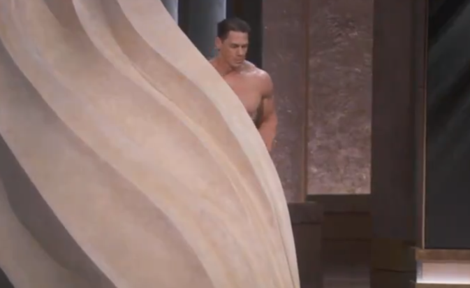 Γυμνός ανέβηκε στην σκηνή ο ηθοποιός και wrestler Τζον Σίνα για να παρουσιάσει τις υποψηφιότητες για Όσκαρ Κοστουμιών στην 96η Τελετή Απονομής των Βραβείων Όσκαρ 2024 της Αμερικανικής Ακαδημίας Κινηματογραφικών Τεχνών και Επιστημών.