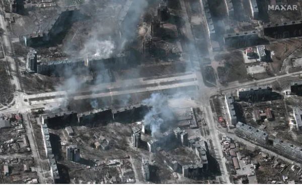 Δορυφορικές φωτογραφίες που τραβήχτηκαν χθες το πρωί από την αμερικανική εταιρεία Maxar και έλαβε το Γαλλικό Πρακτορείο δείχνουν την καταστροφή σε συνοικίες της πόλης, σε πολιτικές υποδομές, σε εργοστάσια.