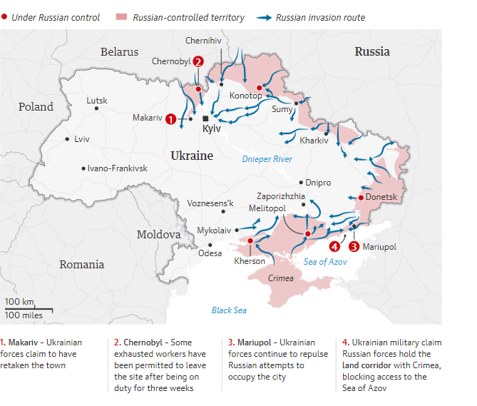Περίπου 100.000 άνθρωποι παραμένουν αποκλεισμένοι και υπομένουν συνεχείς βομβαρδισμούς στην πολιορκημένη Μαριούπολη, σχεδόν έναν μήνα αφότου άρχισε η εισβολή στην Ουκρανία του ρωσικού στρατού, ο οποίος όμως δεν έχει κυριεύσει παρά μόλις μια μεγάλη πόλη, αν και έχει περικυκλώσει αρκετές άλλες.