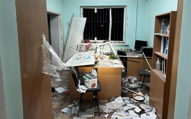 Οι υπηρεσίες έκτακτης ανάγκης, σε ανάρτηση στην εφαρμογή μηνυμάτων Telegram, προέβαλαν εικόνες με μπάζα μέσα και έξω από παιδιατρική κλινική στον τομέα Ντνιπρόφσκι του Κιέβου, στην ανατολική όχθη του ποταμού Δνείπερου.