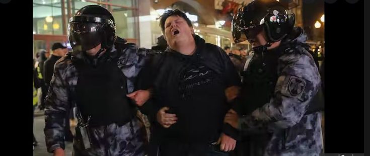 «Τώρα άρχισαν τη “μερική επιστράτευση”. Πώς πάει αυτό;» συνέχισε το βίντεο προτού δείξει έναν Ρώσο στρατιώτη να χτυπά το κεφάλι του σε ένα καπό αυτοκινήτου σε συνδυασμό με εικόνες με τη ρωσική αστυνομία να χτυπά τους διαδηλωτές κατά της επιστράτευσης.