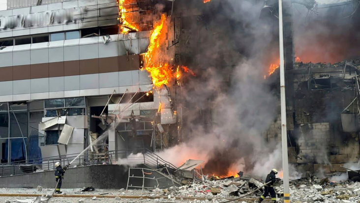 “Τα τέρατα χτύπησαν απευθείας μια τετραώροφη πολυκατοικία με 32 διαμερίσματα”, έγραψε στο Telegram.