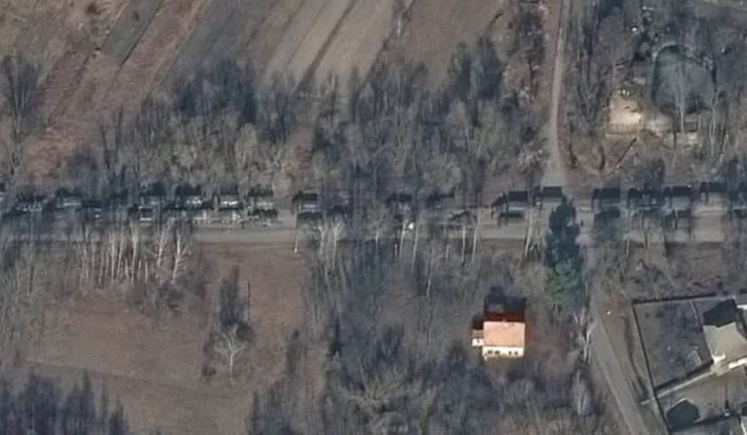 Δορυφορικές φωτογραφίες που τραβήχτηκαν χθες Κυριακή εικονίζουν μεγάλη οχηματοπομπή του ρωσικού στρατού, συμπεριλαμβανομένων αρμάτων μάχης, κινούμενη προς την κατεύθυνση του Κιέβου, περίπου 64 χιλιόμετρα μακριά, ανέφερε η αμερικανική ιδιωτική εταιρεία Maxar Technologies.