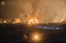 Κατά τη διάρκεια της νύχτας οι υπηρεσίες αντιμετώπισης εκτάκτων καταστάσεων ανέφεραν πως «εχθρικά πυρά» προκάλεσαν πυρκαγιά σε αρκετούς ορόφους του εμπορικού κέντρου στη συνοικία Ποντίλσκι.