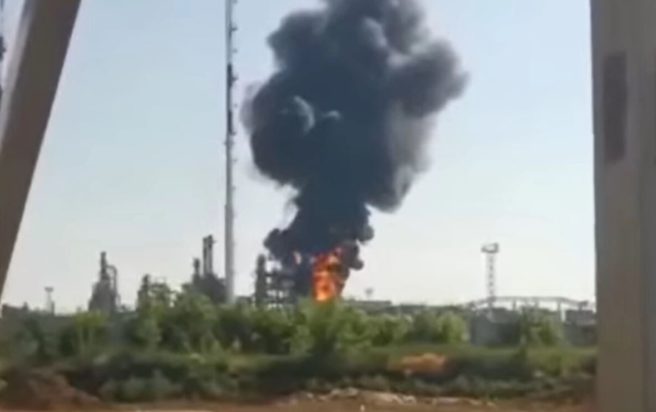Βίντεο που αναρτήθηκε στα μέσα κοινωνικής δικτύωσης δείχνει ένα μη επανδρωμένο αεροσκάφος να πετάει προς την κατεύθυνση του διυλιστηρίου, που βρίσκεται μόλις σε απόσταση 8 χιλιομέτρων από τα σύνορα με την Ουκρανία, πριν σχηματισθεί μια μεγάλη πύρινη σφαίρα, προκαλώντας αναφωνήσεις από όσους βρίσκονταν κοντά στην κάμερα.