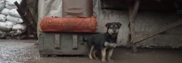 Σε ένα βίντεο που κυκλοφόρησε ευρέως στα social media, φαίνεται το μικρό σκυλάκι να τρέχει γύρω από τους στρατιώτες, κουνώντας την ουρά του ανέμελα.