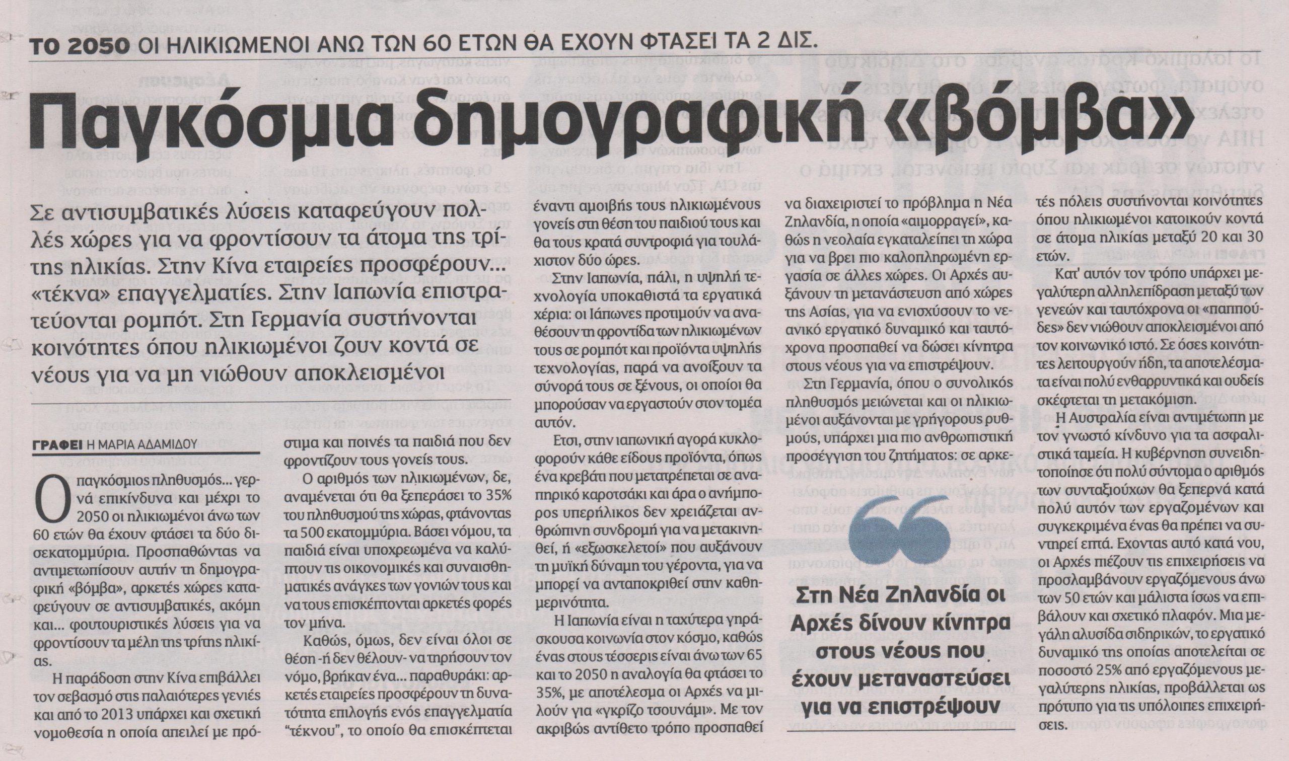 Ο παγκόσμιος πληθυσμός… γερνά επικίνδυνα και μέχρι το 2050 οι ηλικιωμένοι άνω των 60 ετών θα έχουν φτάσει τα δύο δισεκατομμύρια.