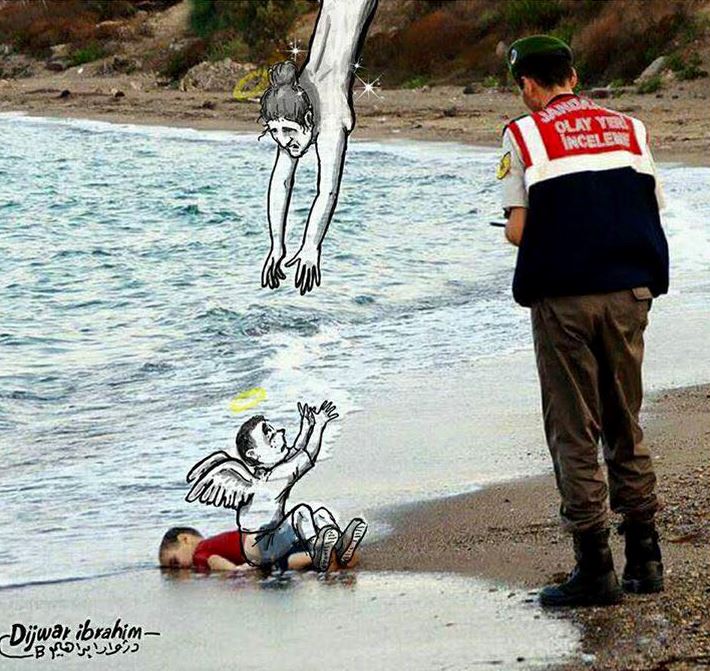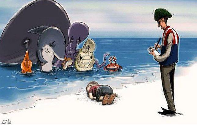 Αρκετοί σκιτσογράφοι θέλησαν να πουν αντίο στον Αϊλάν Κουρντί, το 3χρονο αγοράκι από τη Συρία που βρήκε τραγικό θάνατο από πνιγμό στο Αιγαίο με την φωτογραφία του να κάνει τον γύρο του κόσμου προκαλώντας θλίψη και ερωτηματικά σε όσους τη βλέπουν.