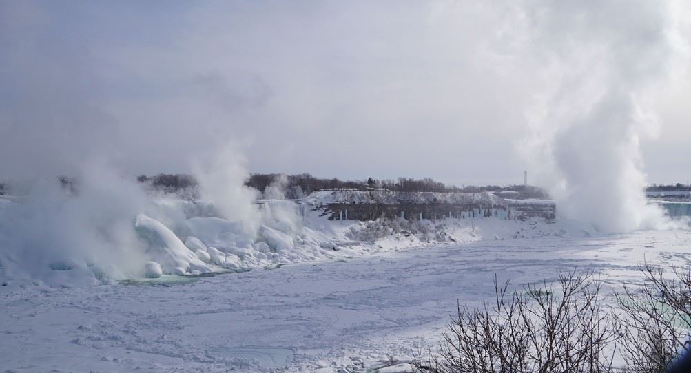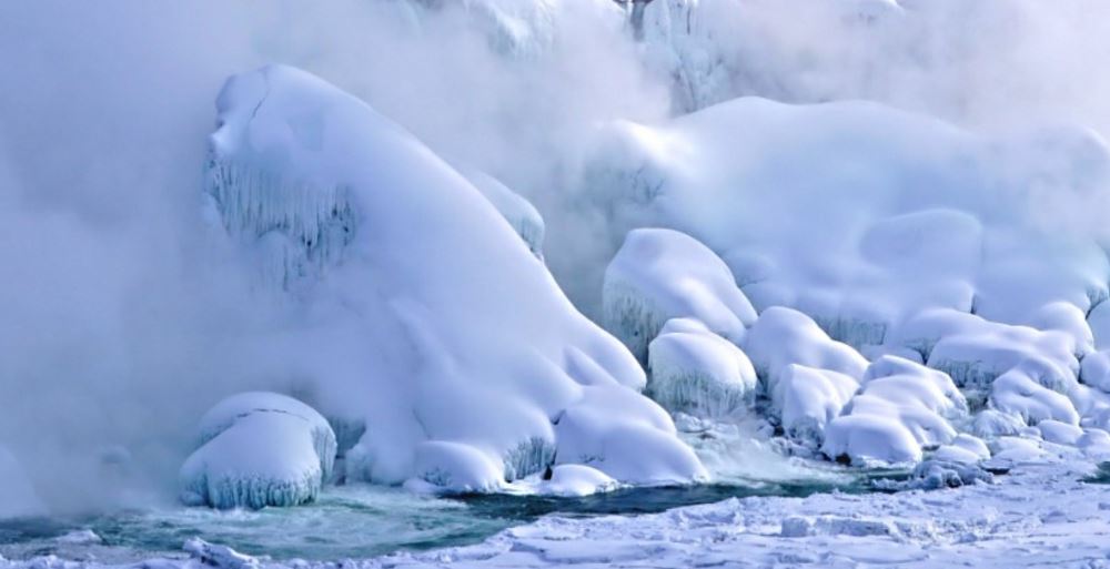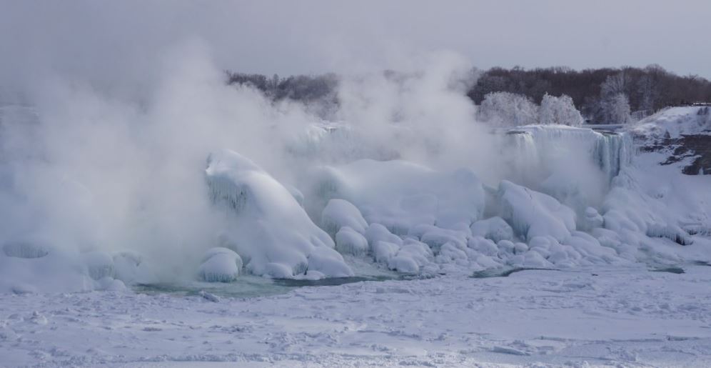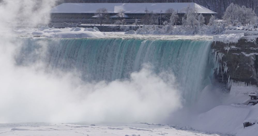 Λευκό τοπίο αντικρίζουν οι επισκέπτες στους καταρράκτες του Νιαγάρα αυτές τις μέρες.