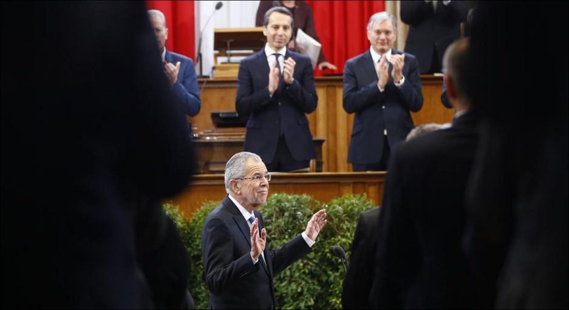 Επευφημούμενος και συνοδευόμενος από πολλές χιλιάδες κόσμου που είχε συγκεντρωθεί μπροστά και γύρω από το επιβλητικό ελληνικού νεοκλασικού ρυθμού κτίριο της αυστριακής Βουλής -με το τεράστιο άγαλμα της θεάς Αθηνάς να δεσπόζει στο προαύλιο της- ο νέος Αυστριακός πρόεδρος μετέβη πεζή στο προεδρικό μέγαρο στα πρώην χειμερινά ανάκτορα του Χόφμπουργκ.