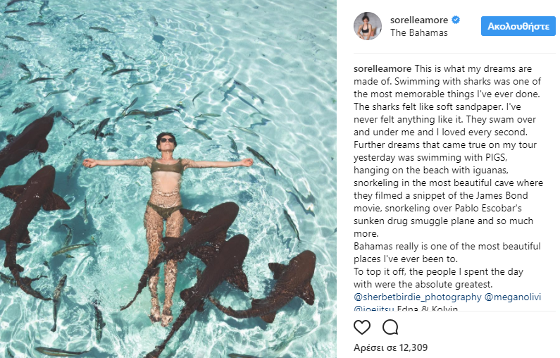 Η Σορέλα Αμόρε έχει κολυμπήσει με καρχαρίες στις Μπαχάμες: