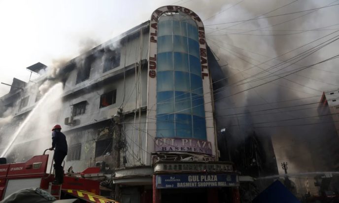 Η πυρκαγιά ξέσπασε αργά το βράδυ του Σαββάτου στο πολυώροφο εμπορικό κέντρο Gul Plaza στην επιχειρηματική συνοικία της πόλης και έκαιγε για περισσότερο από 24 ώρες, εμποδίζοντας τις προσπάθειες διάσωσης στην πυκνοκατοικημένη περιοχή.