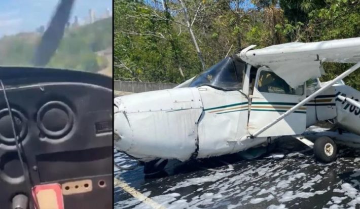 Ως εκ θαύματος, τα τέσσερα άτομα που επέβαιναν στο Cessna Skyhawk δεν τραυματίστηκαν σοβαρά όταν το μονοκινητήριο αεροσκάφος προσγειώθηκε σε μια λεωφόρο κοντά στο Διεθνές Αεροδρόμιο Άλμπρουκ έξω από την Πόλη του Παναμά τη Δευτέρα 1 Μαΐου.