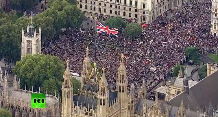 Η πρώτη κίνηση του νέου ηγέτη των Εργατικών Τζέρεμι Κόρμπιν ήταν να συμμετάσχει στη διαδήλωση αυτή, αφού κάλεσε τη βρετανική κυβέρνηση να επιδείξει περισσότερη «συμπόνια».