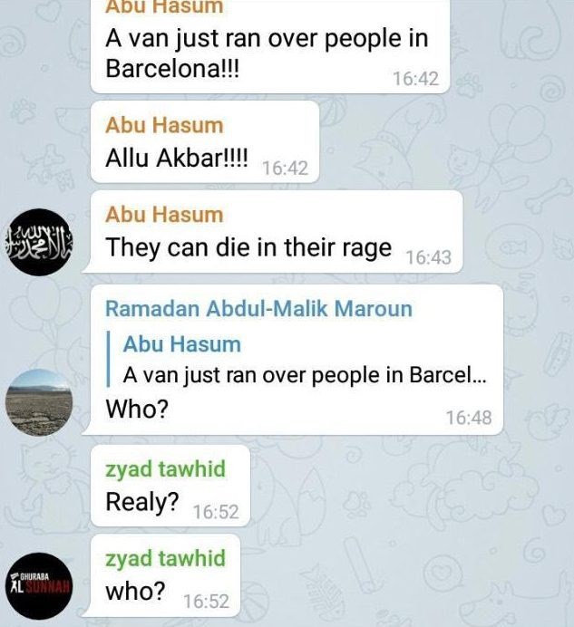 Συγκεκριμένα, υποστηρικτές του ISIS σε αναρτήσεις τους στο Telegram επαινούν αυτούς που διέπραξαν το χτύπημα στην πρωτεύουσα της Καταλωνίας.