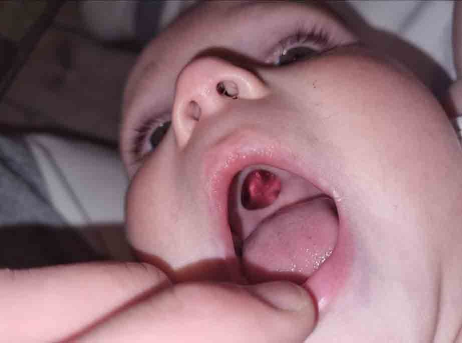 Την τρομάρα της ζωής της πήρε μία μαμά τριών αγοριών, η οποία νόμιζε ότι είχε ζήσει όλα τα τρελά μαζί τους, αλλά προφανώς υπήρχε περιθώριο για άλλη μια περιπέτεια. Η 24χρονη Μπέκι από το Έσεξ ένιωσε να χάνει το φως της όταν εντόπισε μια τρύπα στον ουρανίσκο του 10 μηνών γιου της Χάρβεϊ.