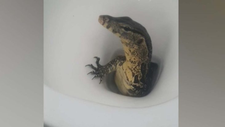 Το ζευγάρι από τη Βρετανία έκανε διακοπές στην Ταϊλάνδη όταν δέχθηκε αυτόν τον απρόσκλητο επισκέπτη. Το ερπετό βγήκε από τις σωληνώσεις, ανέβηκε στη λεκάνη της τουαλέτας, κοίταξε ολόγυρα για περίπου τρία λεπτά και μετά εξαφανίστηκε και πάλι μέσα από τις σωληνώσεις της αποχέτευσης.