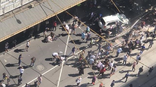Τουλάχιστον 14 άνθρωποι τραυματίστηκαν, όταν αυτοκίνητο έπεσε με μεγάλη ταχύτητα πάνω σε πεζούς, στην οδό Flinders St, στην Μελβούρνη. Νέες αναφορές ωστόσο από τα διεθνή μέσα ενημέρωσης, ανεβάζουν τον αριθμό των τραυματιών στους 19.